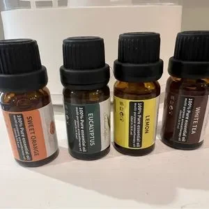 Fall asleep or relax while reading a book next to this humidifier and diffuser combo! With mist and rain fall settings and multiple colored lighting options it is sure to send you into a state of zen! Comes with 4 essential oils, unused.