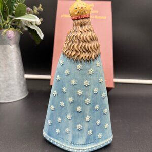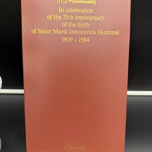 This figurine was released in 1984 to commemorate the 75th anniversary of the birth of Sister M.I. Hummel. It portrays the Madonna, crowned and wearing a star-studded blue cloak, cradling the Christ child. The design sculpted in 1963 by Gerhard Skrobek, emphasizes the mother's protective embrace of the child. There are no chips or cracks. Comes in original protective box.