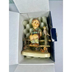 Hummel Goebel Figurine Harmony Boy on fence, 5" height, with box, limited edition, beautiful, Hummel Figurine, porcelain Goebel figurine, goebel, goebel children, goebel porcelain. Size: 5" height x 4" length x 2" width. Weight: 8 oz. Vintage from 1968. It would make nice addition to a collection or for a gift. It's in good condition. However, this figurine is vintage from 1968 and could have some signs of its age. It's TMK4.