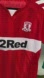 Hummel Middlesbrough Football Club soccer home jersey. Red and White. Size L.