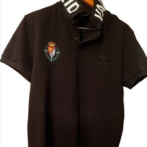 Hummel Polo Shirt Sz L Justo Munoz Black VALLADOLID logo collar