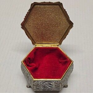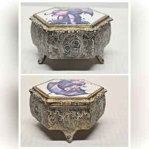 Hummel Stormy Weather Children with Umbrella Footed Gold-Silver Metal Trinket Box VTG Japan