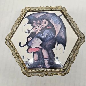 Hummel Stormy Weather Children with Umbrella Footed Metal Trinket Box VTG Japan