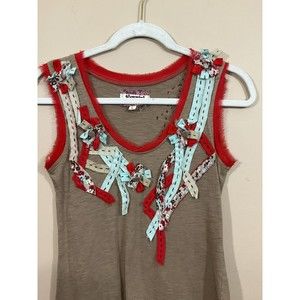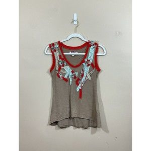 Humming Womens Art to Wear Shirt Size Small Brown Boho Flowers Hippie Funky