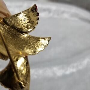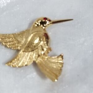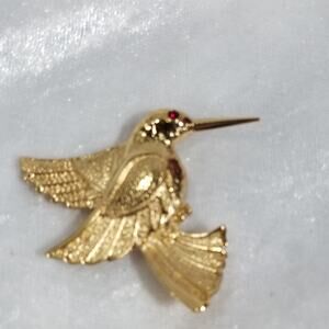Humming bird brooch with red stone eyes gold tone 1.1428
