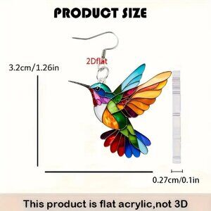 Hummingbid Earrings Bird Dangle Colorful Fun Whimsical Rainbow Sylish Mosaic Look NEW