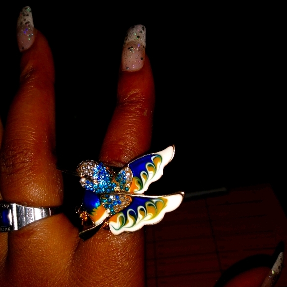 Enameled hummingbird ring