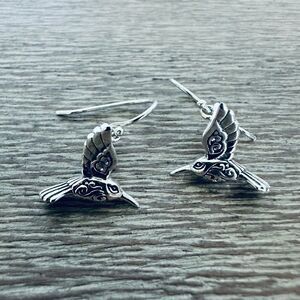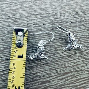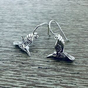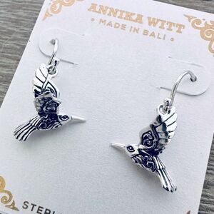 NWT Beautiful intricate Annika Witt 925 sterling silver 3-D hummingbird charm drop earrings with scroll pattern design. Made in Bali.