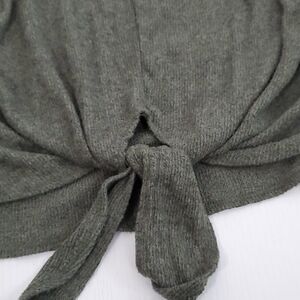 Hummingbird Army Olive Green Slit Arm Tie Front Ribbed Sweater Top