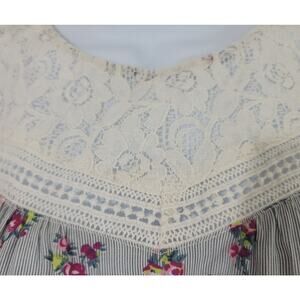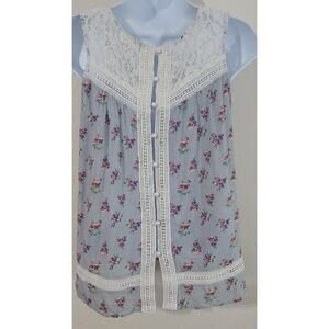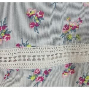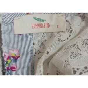 Hummingbird Blue White Stripe Floral Print Tank Shirt Small Lace Bodice Soft