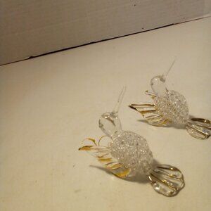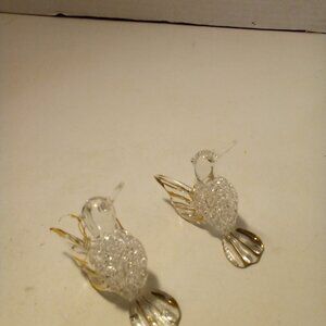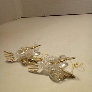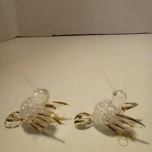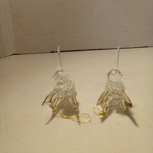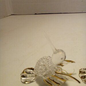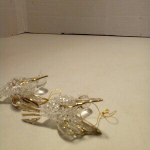 Hummingbird Christmas Ornament Hand Blown Glass Gold Trim 3" Lot of 2