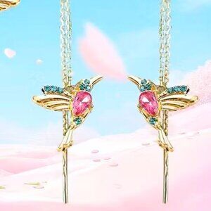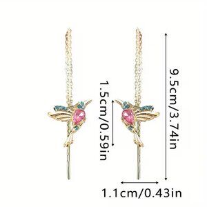 Hummingbird Earrings Bird Chain Dangle Colorful Glam Whimsical Sytlish Trendy