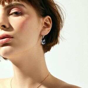 Hummingbird Earrings S925 Sterling Silver Black Dangle Drop Earrings