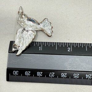 Hummingbird Figural Brooch Pin Marcasite Black Enamel Silver Tone Metal
