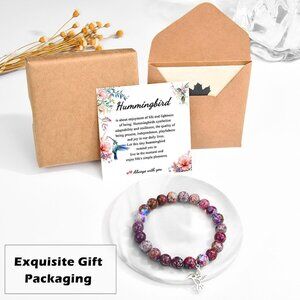 Features: Delicate 8mm natural stone beads combined with a charming stainless steel hummingbird charm. Adjustable elastic cord makes it super easy to put on and take off. Perfect for everyday wear or as a thoughtful gift.