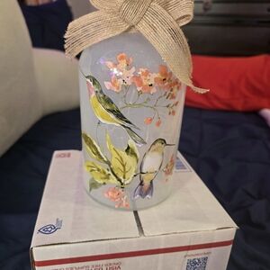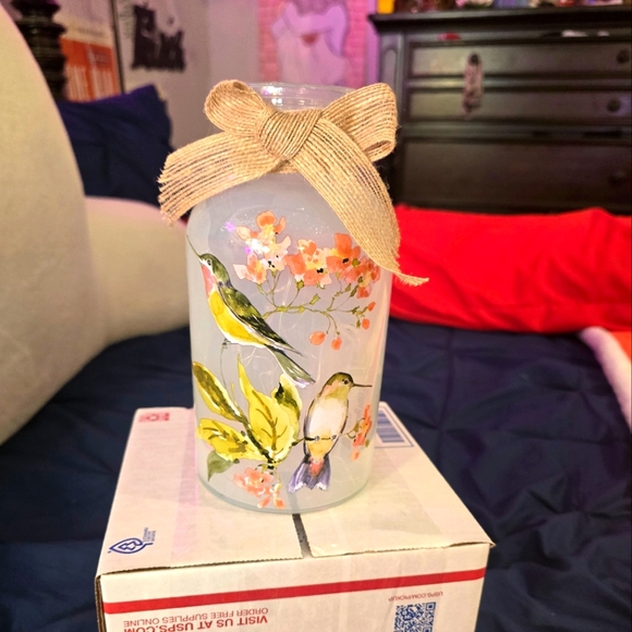 Like new condition. Glass Jar with painted hummingbirds. Light that are battery operated inside. Gorgeous
