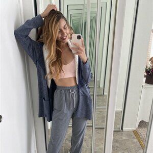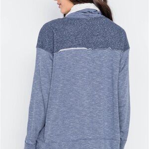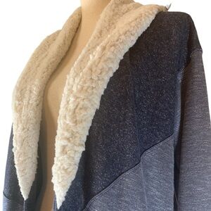 Hummingbird Long Sleeve Navy Cardigan Fuzzy Collar - Navy Blue - Patchwork