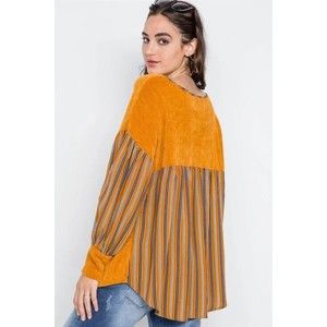 Hummingbird Mustard Mix Media Vertical Stripes Drop Shoulder Top Sweater…
