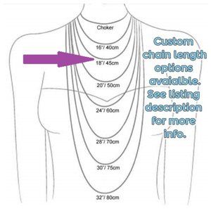 My necklaces are made with a standard 18-inch “Princess” length chain;
