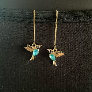 Super cute hummingbird threader earrings, gold with topaz stone. NWOT.
