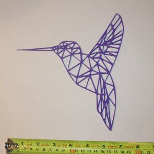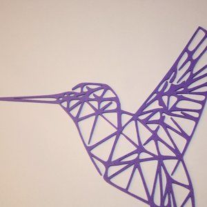 This indoor wall decoration was created as a simple and lightweight design to charm to any room. Created with precision by 3D printing technology. This geometric hummingbird design will add to any decor with this classic piece.