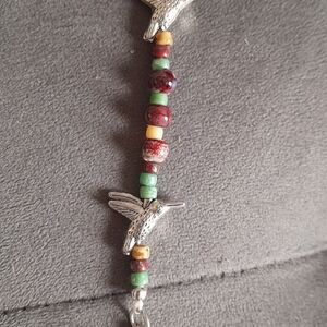 Handmade by me. this rosary features silver hummingbirds about 10mm, and 8mm hail mary beads and 6mm spacer beads. Rosary center is stamped Italy . strung on c lion cord.