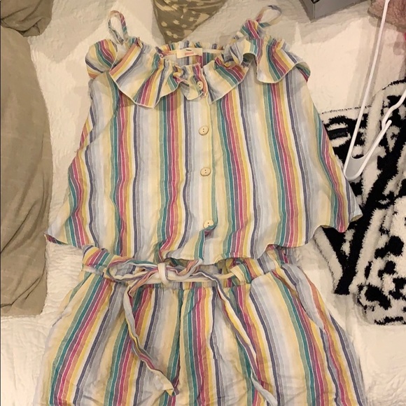 Cute rainbow stripe set. Paper bag style shorts, button top with straps. Both size small