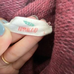 Hummingbird Burgundy Fuzzy Cozy Split Back Drop Shoulder Turtleneck Top Size Large