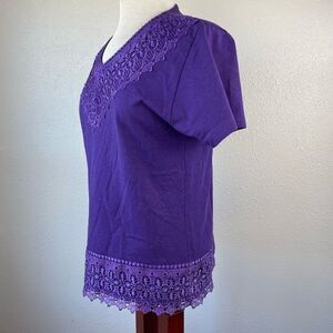 Beautiful purple top by Hummingbird in excellent preowned condition. It measures 19 inches armpit to armpit laying flat and 24 inches in length from shoulder to hem.
