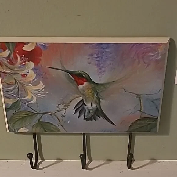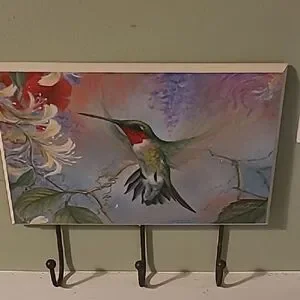 Preowned in good condtion.Beautiful hummingbird in flight with three metal hooks. The size is approximately 9.25 by 4.5 inches nit incluinf the hook which would add approximately anither 2 inches to its length. Proceeds from this sales goes to help build a school im Ugandsa.