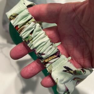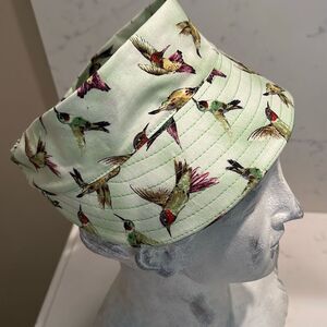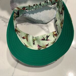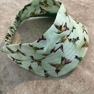 Soft hummingbird print visor. Gathered back tab so once I fit most. New without tags. So it would be easy to pack or carry.