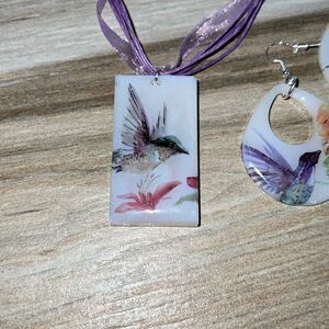 Hummingbird earring and necklace set custom made. Not perfect, but perfectly made with love