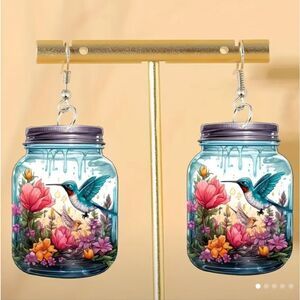 Hummingbird earrings garden flowers dangle acrylic new f2