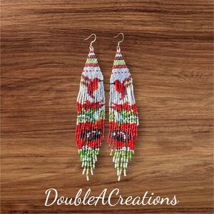 Here’s a pair of Hummingbirds Over Flowers Beaded Earrings with Fringe are lightweight and comfortable to wear all day long. Made with high quality glass Delica Beads, beaded one bead at a time. Love and passion goes into making my jewelry. This process requires focus, patience and dedication. Each bead is 16th of an inch and can take hours to complete a project.