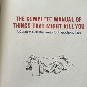 A Complete Manual of Things That Might Kill You. A guide to self diagnosis for hypochondriacs. This book is to humor and entertain, not a medial book. Full of different diseases and little quizzes. Hard cover