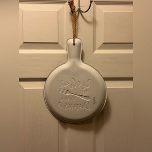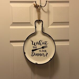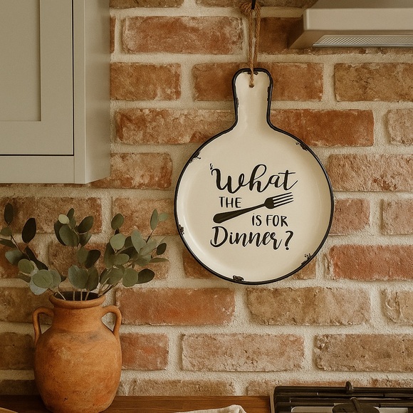 Wall sign with 'What the Fork is for Dinner?' design. Features a cream background with black text. Adds a fun touch to your kitchen decor.