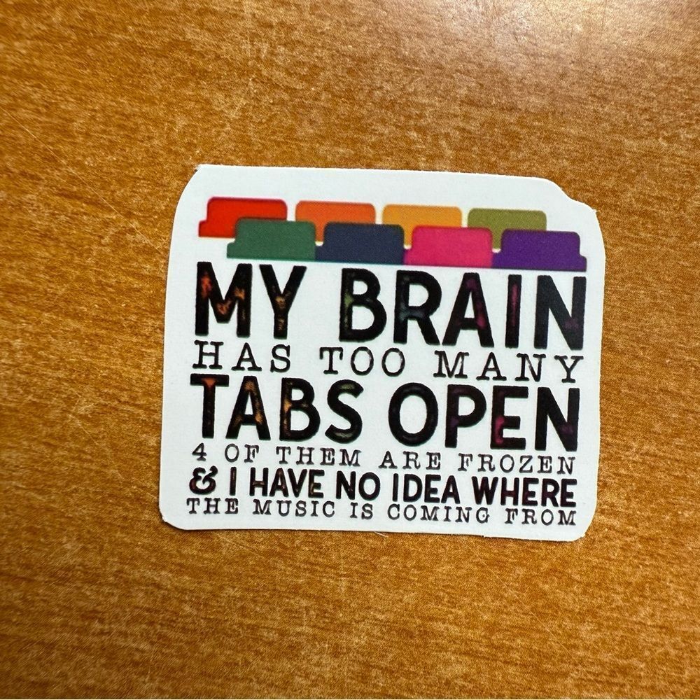 Sticker with colorful tabs and funny text. Great for laptops or notebooks.