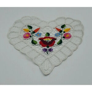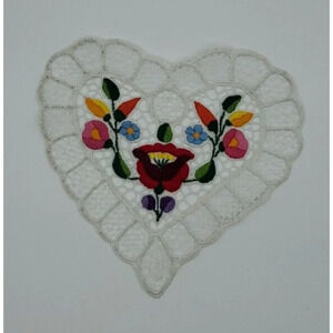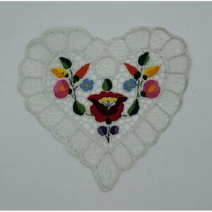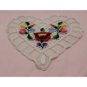 Hungarian Beautiful Hand Embroidered Heart Shape Doily Lace Kalocsai Floral
