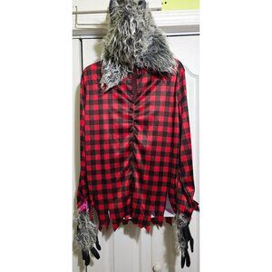 Hungry Howler Werewolf Costume Boys 12-14 Halloween Faux Fur Mask Gloves Kids