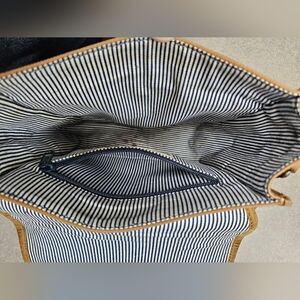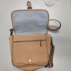 of the description. Inside of bag has a spot, as does the outside flap. Thank you for looking!