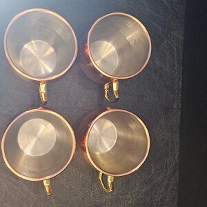 A set of 4 Hunt A Killer/Detective Juice, 16 ounce copper Moscow Mule mugs. Nickel line set of four. Measures 4 inches tall, 3 1/2 inch opening. The words Hunt A Killer are etched on the front and Detective Juice on the backside of the mugs. There are new condition. Non smoking pet free home. @ ER NW Boxed