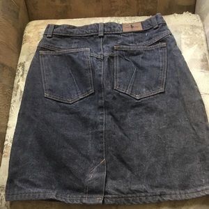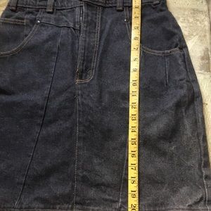 Vintage denim black color skirt in good condition. Size 4. It has a small slid on back. Zipper and button closure. There is a small rip by the tag please see pictures.