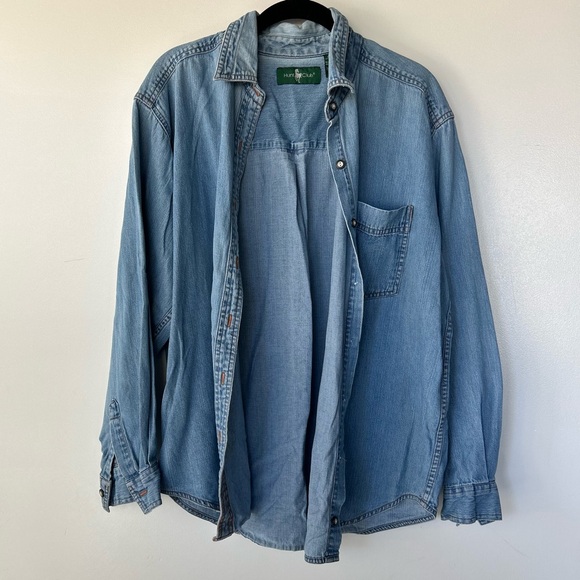 Casual denim button-down with chest pocket. Perfect for everyday wear.