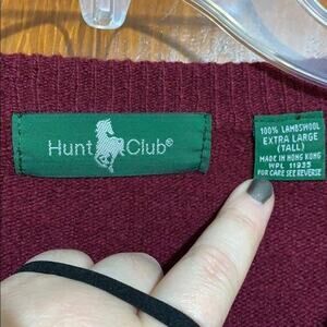 Hunt Club Mens Sweater Lambs Wool V Neck Pullover Long Sleeves Wine Red XL