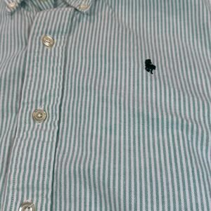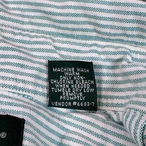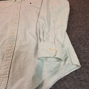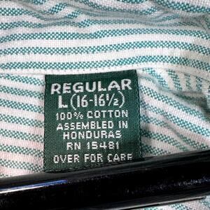 Hunt Club Shirt Mens Large Green White Stripe Embroidered Chest Cotton Button