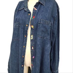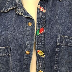Hunt club vintage denim button down with embroidered season details down the front. Great condition! super cute, could wear like a jacket .