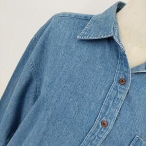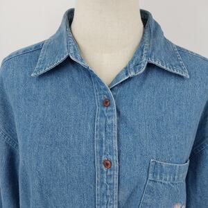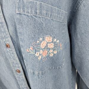 Hunt Club Womens Denim Long Sleeve Floral Embroidered Pocket Shirt Size L Cotton
