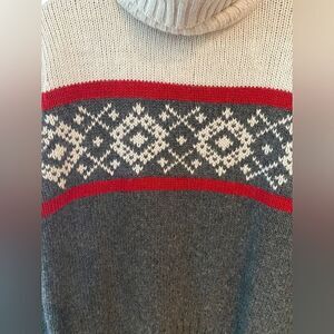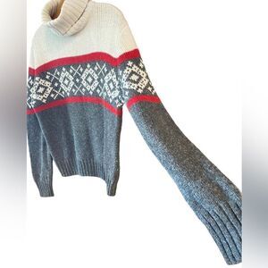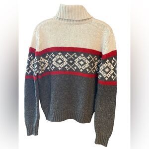 Hunt Club M Beige Gray Fair Isle Skiing Resort Winter Turtleneck Wool Sweater
