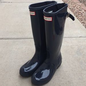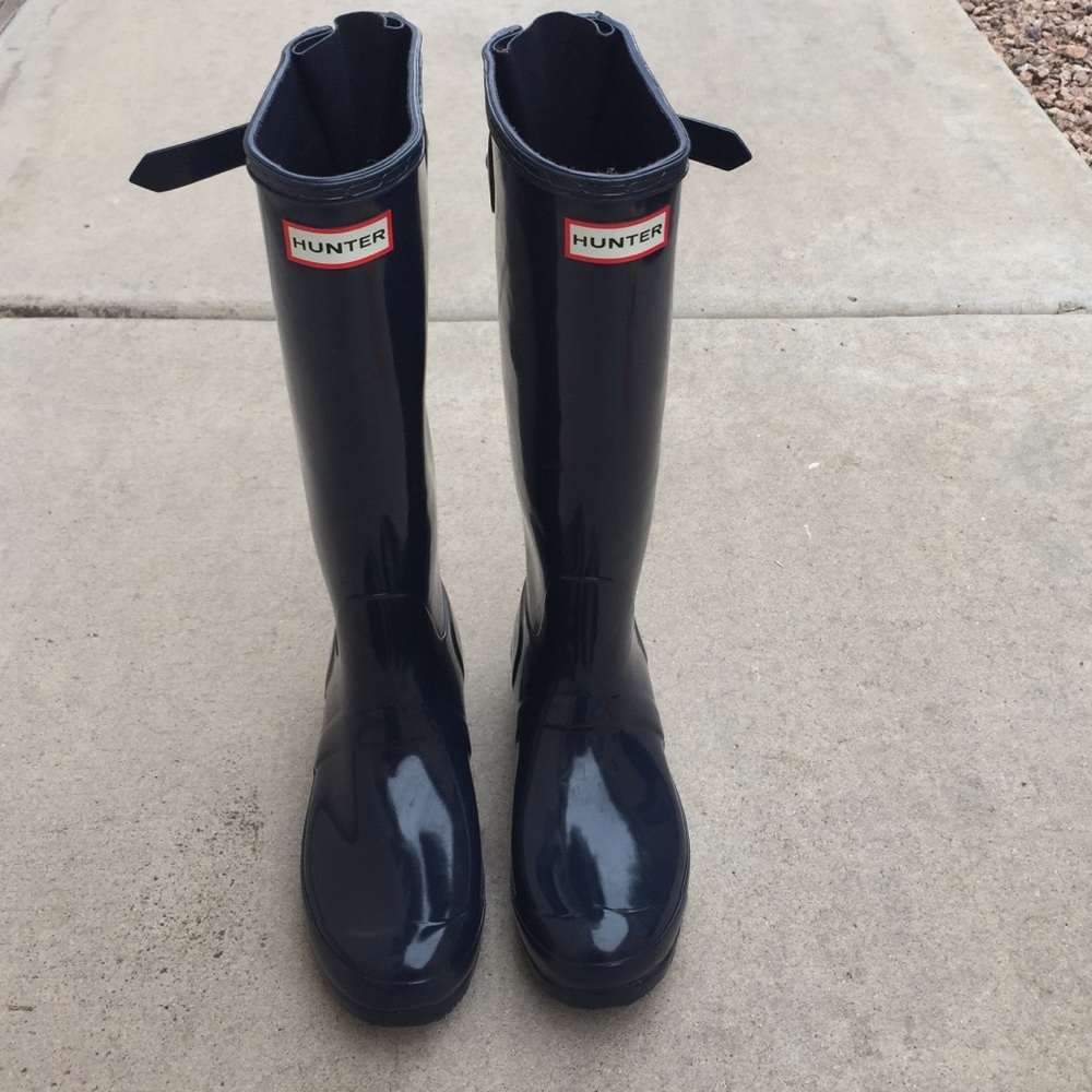 Gloss navy blue hunter Boots great condition very light worn adjustable buckle