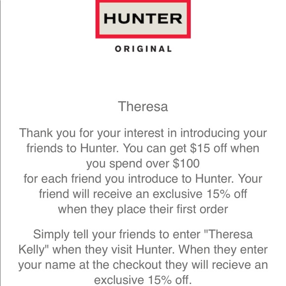 Hunter boot promo code / coupon code / discount code / mention me